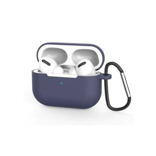 Husă din silicon pentru Airpods Pro cu carabină - Albastru închis